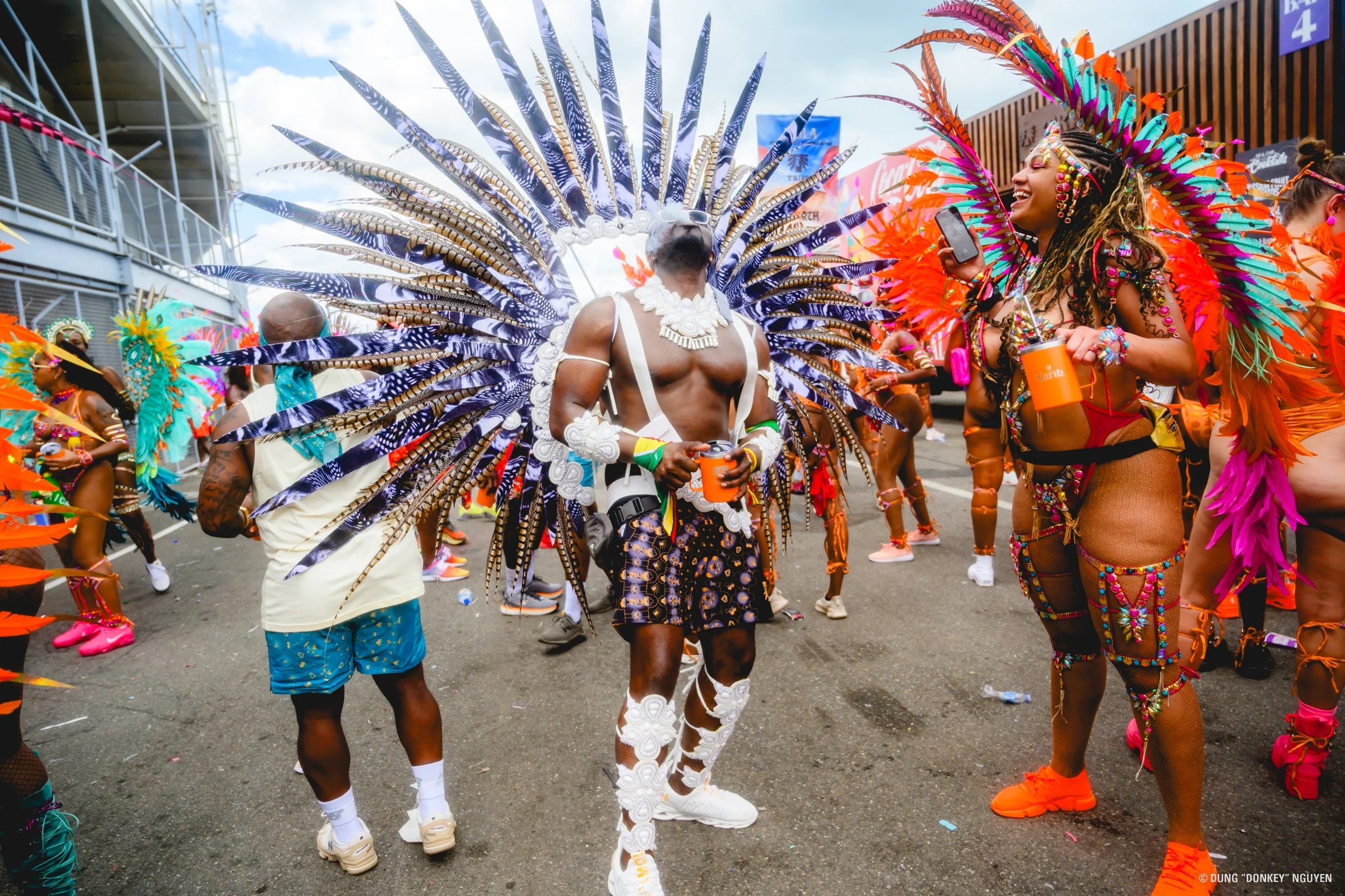 After a bit of walking, we ended back up at the Hasley Crawford Stadium to cross the stage at Jean Pierre Sports Complex (again). Here, we got a chance to see all the amazing costumes. My favorite were the frontline costumes from the Rayana section (see the hero image at the top of the post).