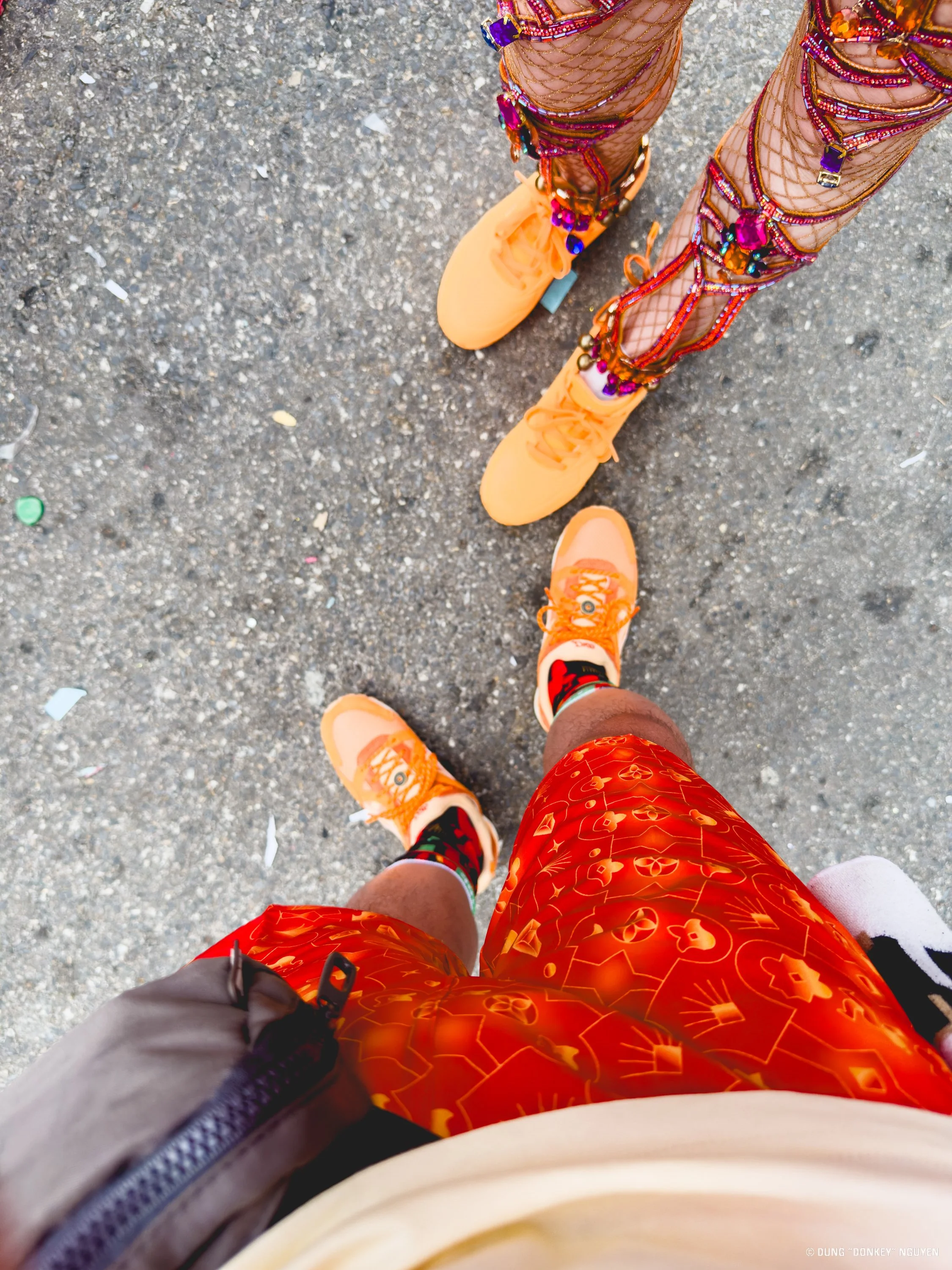 The band’s website said that “MALE masqueraders MUST wear official TRIBE shorts together with ID wristband at ALL times on both days.” Due to the reversible nature of the shorts, we collectively decided we shouldn’t wear them since we’d have to wear them again the next day and we didn’t have access to washing machines.
